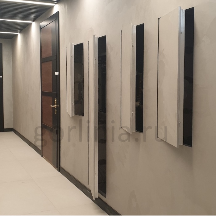 Распашной механизм открывания на петлях собственной разработки, 6 комбинаций ручек, защелок и замков.