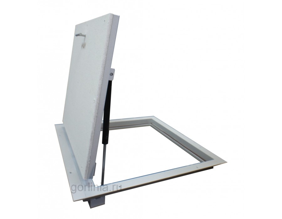 Интерьерные напольные невидимки АМО сварены из стальной трубы 30х20 и уголка 40х40х4мм. Окрашены эмалью, просушены в высокотемпературной камере. Узлы откидного механизма: пневмоподъемники, скрытые петли и регулируемый замок со съемной ручкой. Тип открывания шарнира: распашной с одной осью. Крышка двери подготовлена под облицовку в материал пола по прилагаемой инструкции.