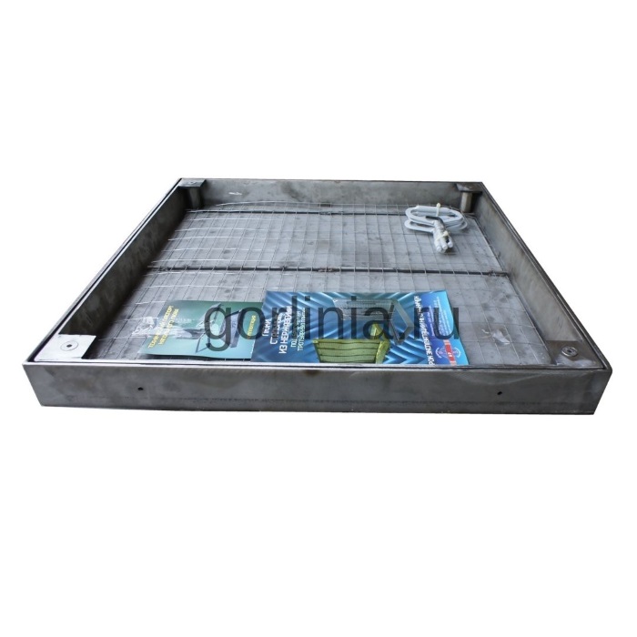 Корыто вынимается за 4 навинчиваемые рукоятки по углам. Заполненная плиткой крышка весит около 100 кг.