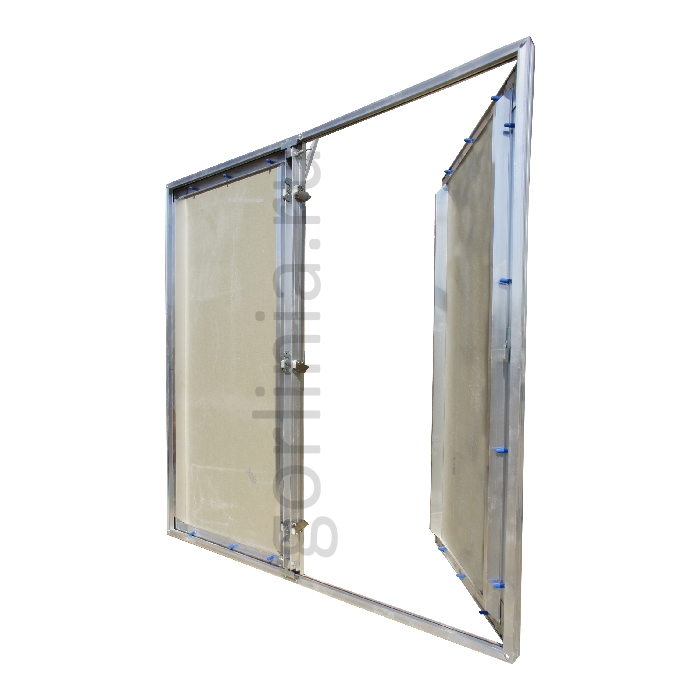 Нажимные дверцы ходят на несъемных петлях с одной осью вращения, дополнительно фиксируются в коробке через съемную перемычку по центру