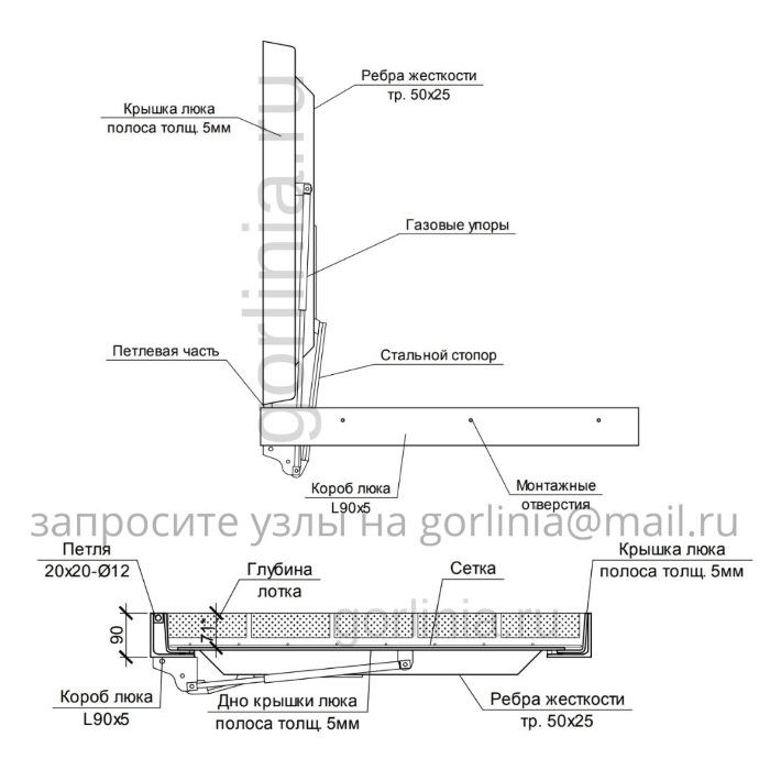Корпус сварен из сортового уголка 5-6 мм; корыто - из листового проката 5-8 мм, усилено снизу профильной трубой 50х25. Сварка аргонно-дуговая. Характер шва сплошной с присадками меди.