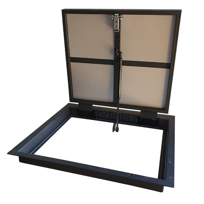 Облегченная рама из листового проката 3 мм с наличником для установки в поверх черновой стяжки в нулевую отметку полов. Каркас с обвязкой сварен из трубы 30х20, обшит ГВЛ над утеплителем под финишную отделку плиткой.