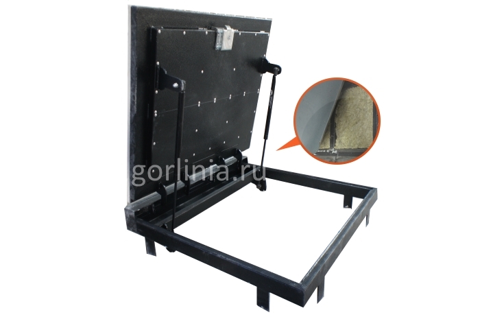 Рама без наличников выставляется в существующем отверстии 87*80 см с допусками, крепится в перекрытии через вертикальные пластины даже когда Ваш ремонт закончен и пол выложен керамогранитом или настелена ламинированная доска.