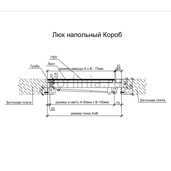 Рама без наличников выставляется в существующем отверстии 80*80 см с допусками, крепится в перекрытии через вертикальные пластины даже когда Ваш ремонт закончен и пол выложен керамогранитом или настелена ламинированная доска.