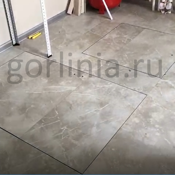 Дверь в обвязке из профиля со крытыми петлями из равнополочного уголка 40х4 сохранят геометрию при проходе людей в бытовых условиях. Вы ходите по закрытой крышке с плиткой как по обычному полу, при необходимости спуститься в подполье, вставляете ключ и спокойно поднимаете дверцу на газовых упорах.